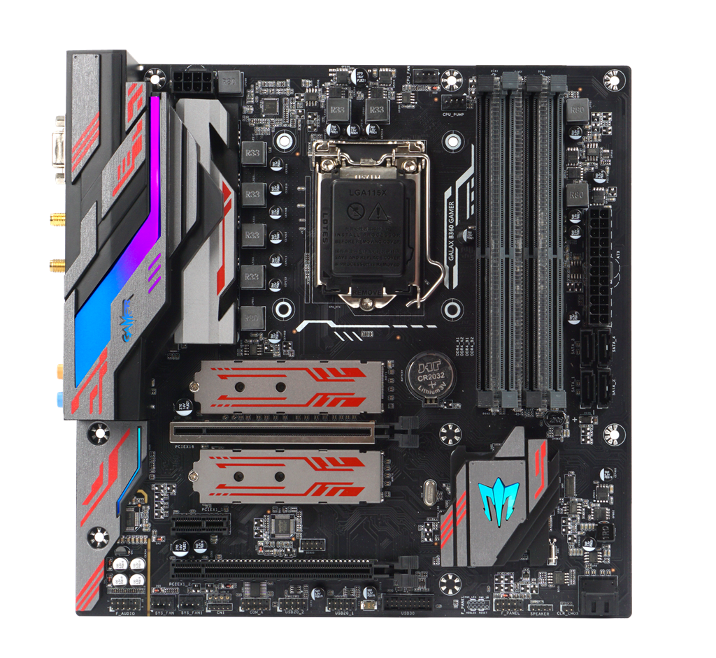 更值得一提的是,影驰 B360 GAMER主板通过GALAX Aurora Vision For Memory(影驰极光幻影光效系统)便可以实现软控调灯,1680万色炫彩灯光,多达10种灯效模式可供选择,并且还能够搭配影驰GAMER极光内存实现真正意义上的灯效同步!