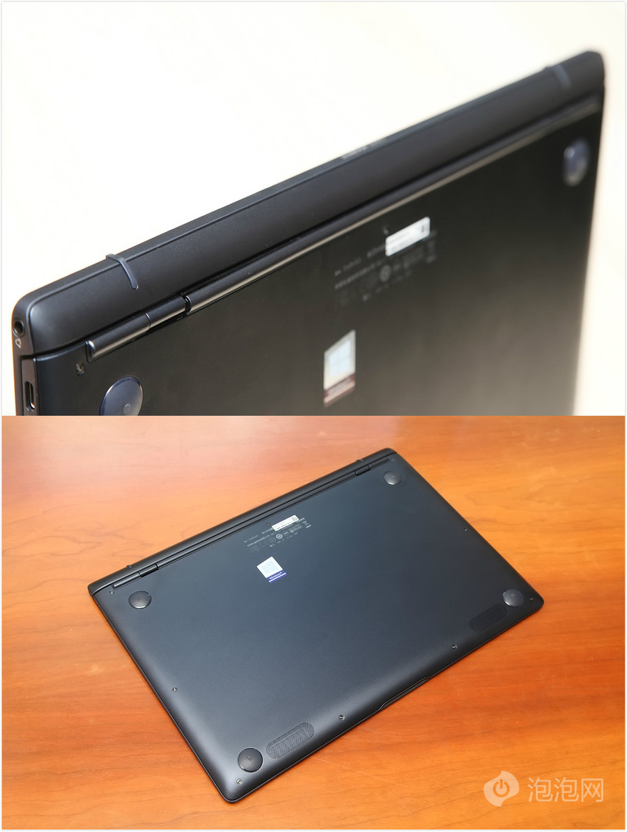 D面采用了四颗圆形脚垫,同时在A面下边缘也配置了两条橡胶脚垫,这种设计的主要原因在于,设备在掀起屏幕的工作状态时,A面末端将会替代最上侧的脚垫充当支撑机身的工作,A面边缘的两颗脚垫有效防止了边框磨损。