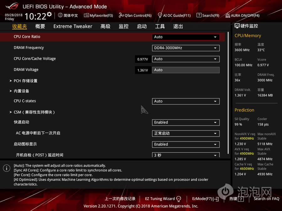 高级界面则是关于华硕ROG MAXIMUS XI HERO WiFi主板的一些功能设置。