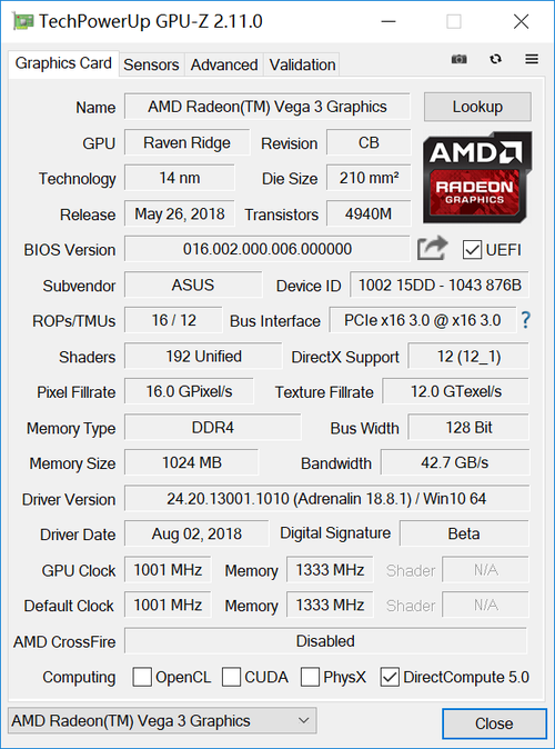 这颗集成显卡事实上,是一颗拥有192和流处理器单元的Vega架构核显,虽然参数上显得非常“低调”,显然不能带来多少游戏性能上的期许,但作为入门级处理器集成的产品,它的本职工作还是做好视频输出。相对于奔腾G4560搭载的 HD610核显在HDMI接口上仅支持4K 30Hz信号输出的“残酷事实”而言,速龙200GE搭载的Vega GPU支持的HDMI 4K 60Hz输出就显得实用许多了。