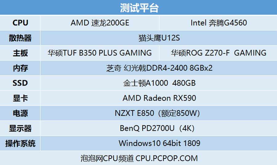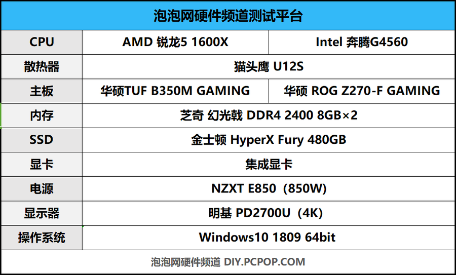 测试平台由于我们手中没有找到H110和A320主板,所以我们先以B350和Z270主板来作为各自的平台来使用。内存方面为了避免造成瓶颈,我们选择了双通道8GBx2的方案,频率设定为低端市场常见的2400MHz。显示器我们选择了一款4K级别的显示器产品,来实际测试视频输出能力。
