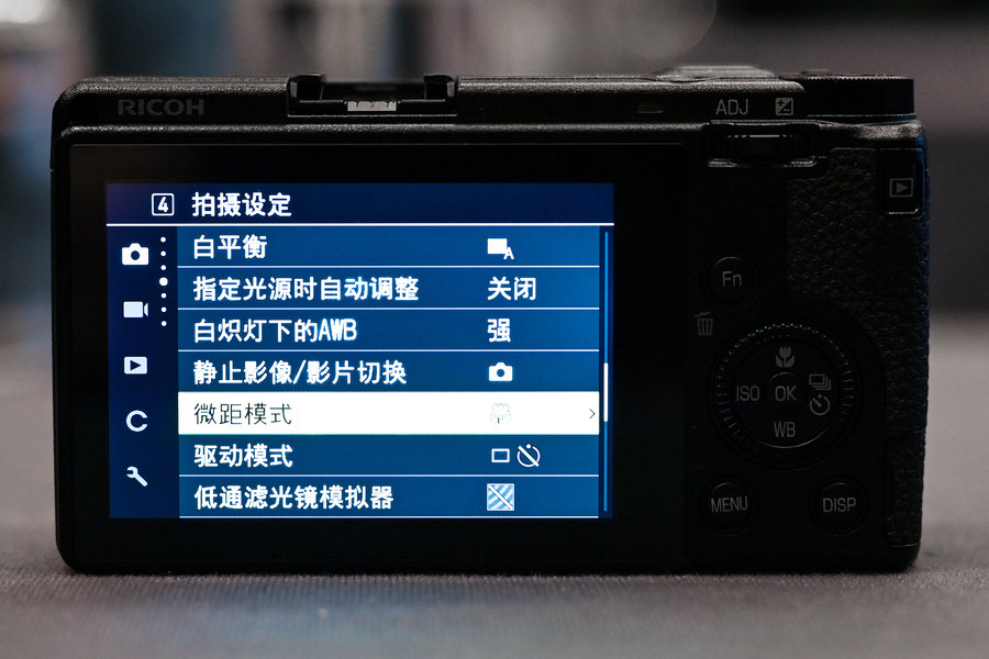 在镜头规格方面,理光GR III虽然依旧还是28mm f/2.8(等效35mm)的广角镜头,但镜头内部的光学结构为全新设计,为4组6片,其中含2枚非球面镜片,之前GR II的镜头结构则是5组7片,并且还值得一提的是GR III微距最近对焦距离仅为6cm,相比GR II的10cm能更靠近被摄对象,结合APS-C画幅大尺寸传感器和f/2.8大光圈的优势能获得更好的近摄体验。