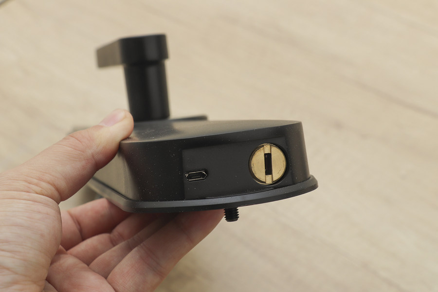 在360智能门锁M1青春版外侧把手的下方,还设计有智能门锁的实体钥匙孔位和Micro USB充电口,当遇到智能门锁没电的情况时,用户可以直接通过实体钥匙开锁,或者也可以借助移动电源,给360智能门锁M1提供暂时的电力支持,然后用户就可以通过指纹或密码的方式打开门锁,保证用户在任何情况下都能够顺利进入家门。