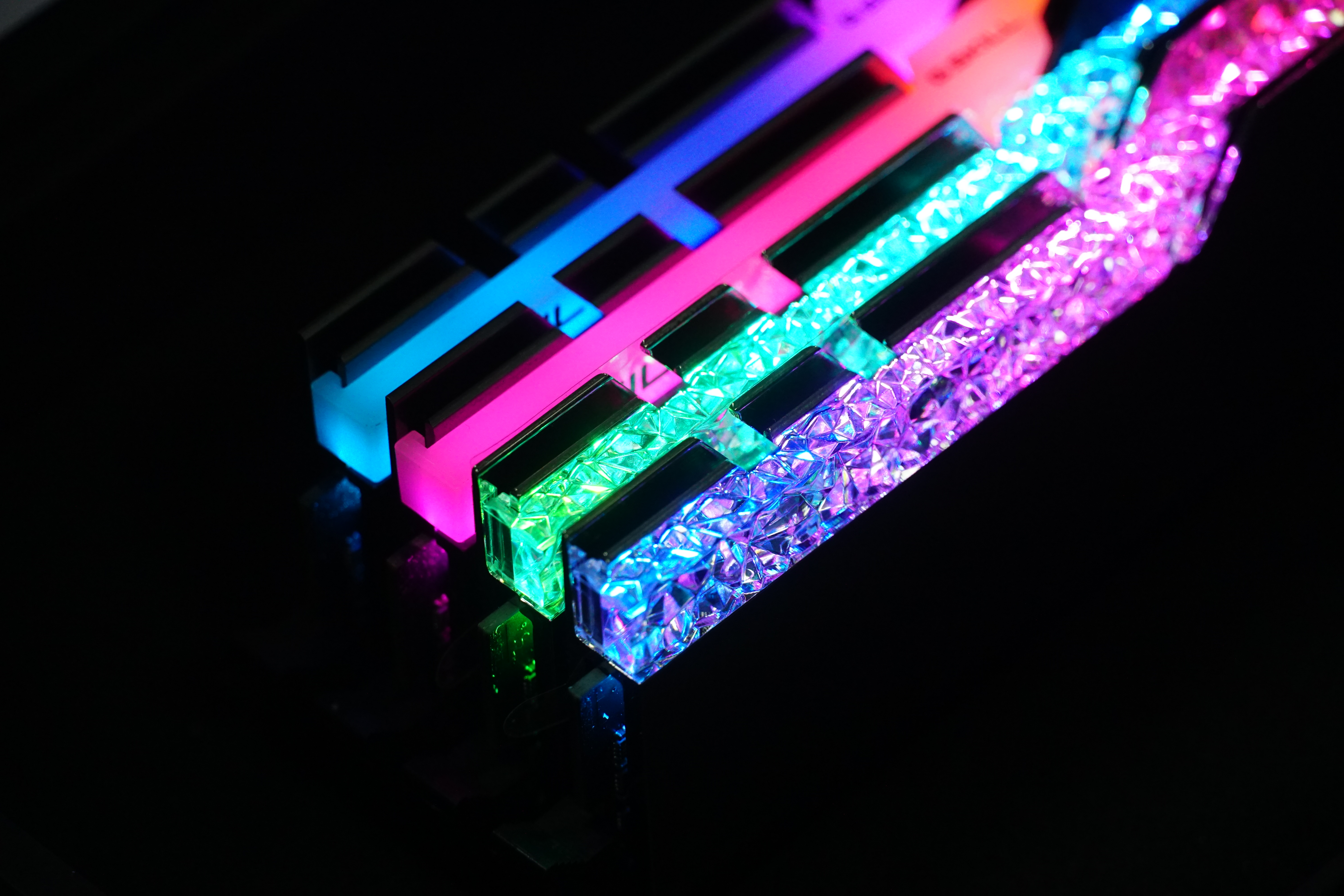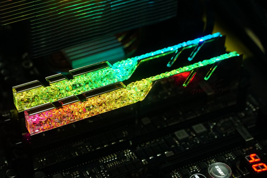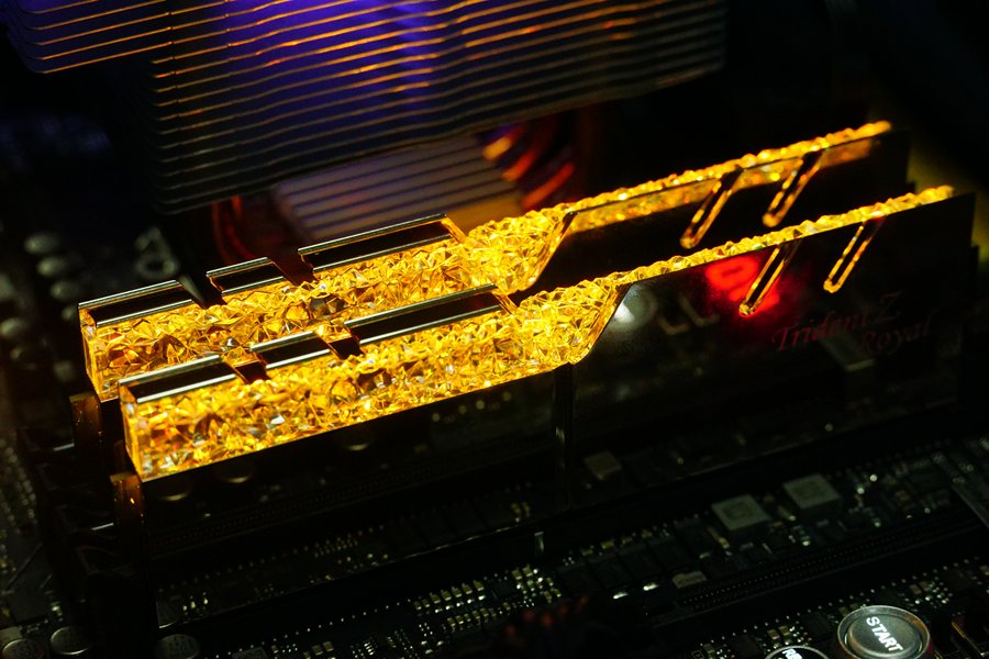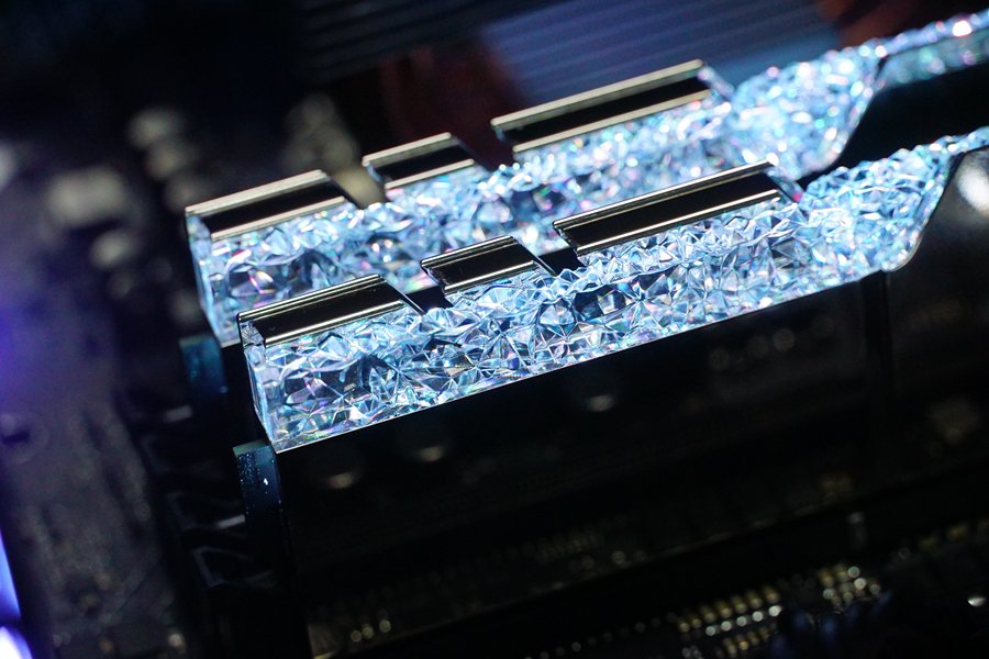 毫无疑问,皇家戟是目前颜值高的内存产品,几乎完全不需要人为的溢美之词来形容。晶莹剔透的导光条可以呈现出一种钻石、水晶般的质感,配合均匀的RGB灯光,优异是一种优异的视觉体验。