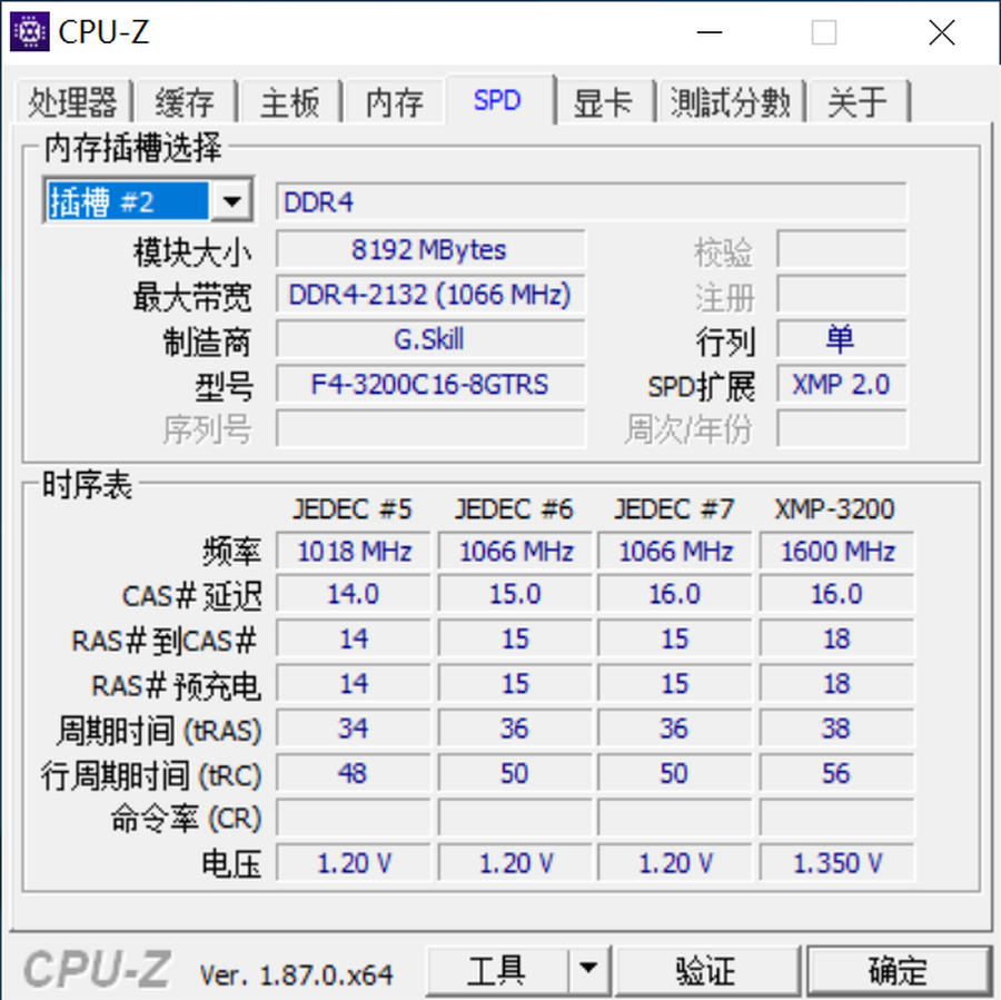 可以看到我们拿到的是一款时序为CL16-18-18-38的产品。