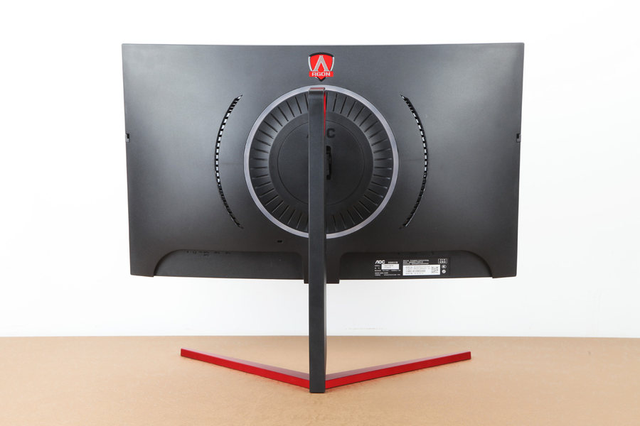 AG273QCG电竞显示器没有采用目前市面上主流的底座旋转方案,而是将连接处放在了显示器背面的中心,另附有便携式提手一枚。