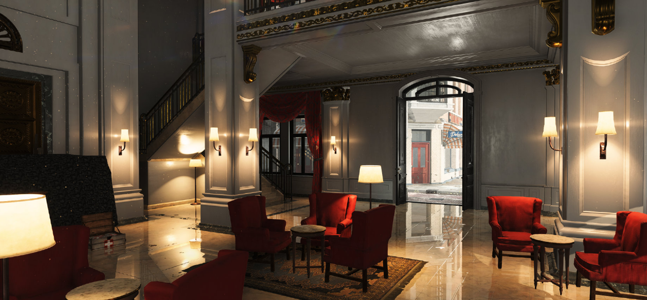 (《战地V》DXR开启下的地板反光效果)