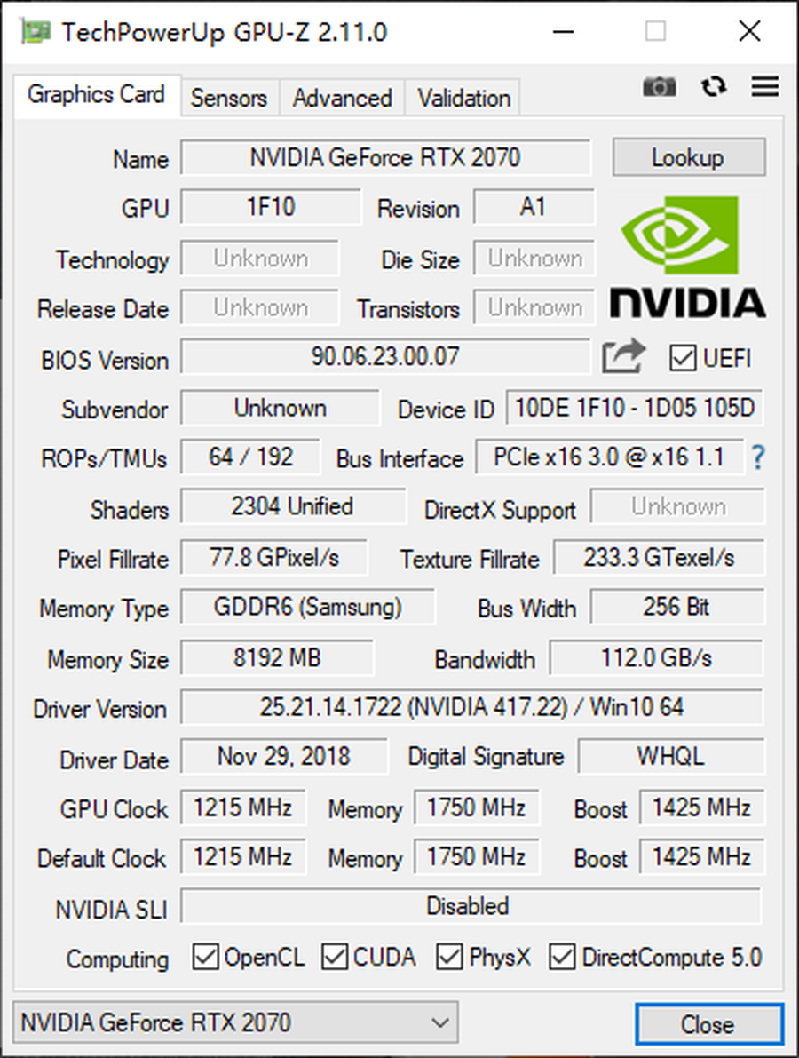 可以看到,NVIDIA® RTX™ GeForce 2070的性能基本介于GTX™ 1070和GTX™ 1080之间,性能表现非常不错。