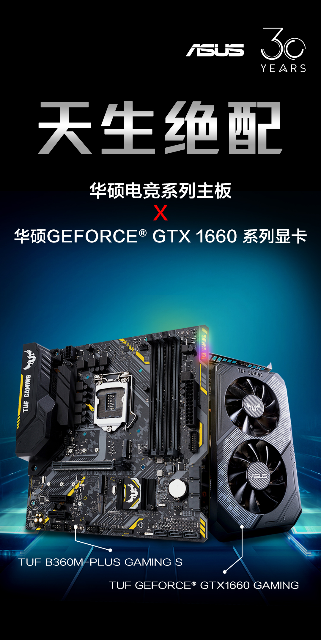 上周GeForce® GTX 1660系列显卡正式上市,其更亲民的价格再次激起了玩家的攒机热情。都说好马配好鞍,针对这款更平衡、更高效的甜品级新显卡,现在特别推荐三款性能卓越的华硕主板,包括TUF B360M-PLUS GAMING S、TUF Z390-PLUS GAMING (WI-FI)以及TUF B450M-PLUS GAMING主板,与华硕TUF GeForce® GTX 1660 GAMING显卡同属于TUF GAMING电竞特工系列,可谓是天生绝配!该系列主板有着“国民电竞主板”的美誉,新潮的外观设计,军事迷彩元素加上兰博基尼黄配色,突显其沉稳、疾速。更精选TUF军规认证用料和I/O盔甲,秉承坚固耐用、持久稳定的精神,并将华硕日益精进的电竞黑科技也融入其中,尤其在音效部分更贴合游戏玩家的需求,非常适合追求稳定、高效的游戏玩家们。