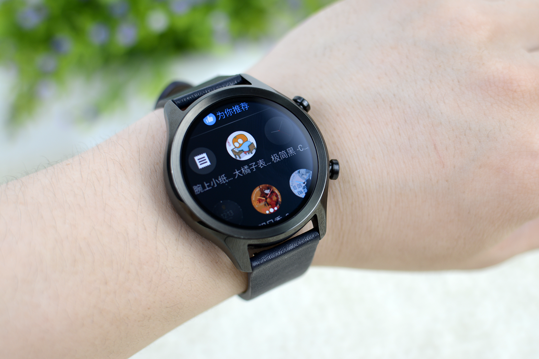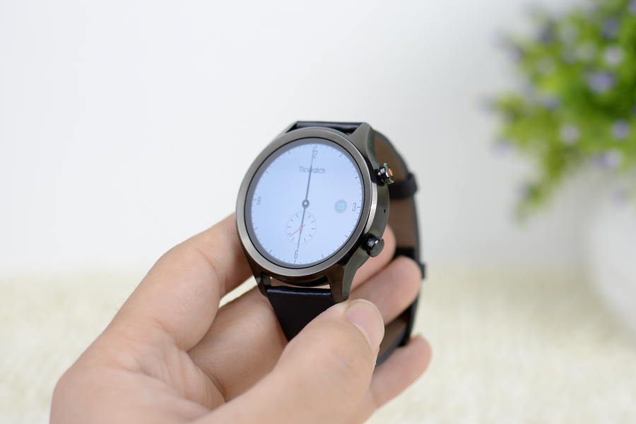 TicWatch C2延续了传统纯圆表盘风格,搭载1.3英寸AMOLED纯圆显示屏,分辨率达到360*360像素,而为了更加优异的美学设计,在TicWatch C2上我们几乎看不到智能手表常被诟病的“黑眼圈”、“双下巴”、“大脖子”的缺点,从而保证了屏幕和表圈的双层无暇纯圆,同时屏占比也高达70.7%,达到行业领先的水平。