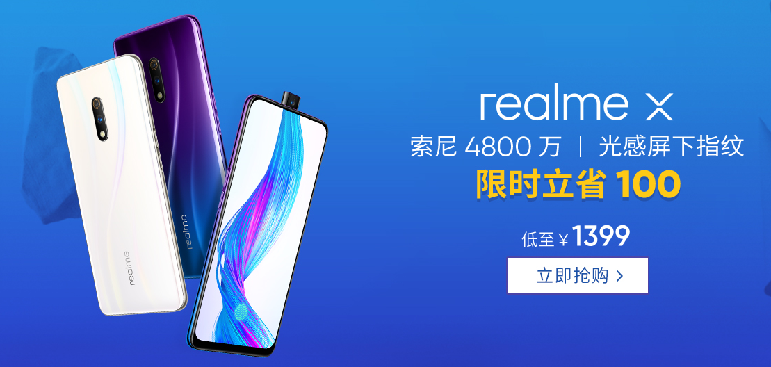 目前,realme X正在京东官方商城火热预定抢购中,直降100元的性价比手机,仅需1399元即可拥有,先到先得。