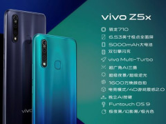 硬件方面,vivo Z5x搭载基于先进的10nm工艺制程的高通骁龙710次旗舰处理器,享有与骁龙845相同的第3代Kryo架构CPU(中央处理器)以及Adreno 616 PC级GPU(图形处理器),另有vivo Multi-Turbo多涡轮加速引擎的加持,手机性能得到突破式提升。续航方面,vivo Z5x配备5000mAh大容量电池,21小时超长待机,可连续播放16小时视频,标配18W双引擎闪充,支持OTG反向充电。