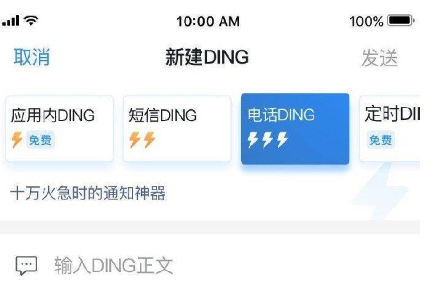 作为钉钉核心功能之一的DING功能,它的主要作用为:DING消息将会以免费电话、免费短信或应用内消息的方式通知到对方;无论接收方的手机有无安装钉钉APP,是否开启网络流量,均可收到DING消息,实现无障碍的信息必达。