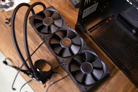 ROG STRIX飞龙360一体式水冷散热器,采用AIO一体封闭式方案,自带360mm水冷排,水冷排自带三把ROG定制300px高风压风扇,支持PWM温控变速。