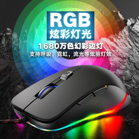 QMXD 有线游戏鼠标 灵敏迅速(鼠标 绝地求生鼠标 七彩灯光) RGB黑色为其它,采用有线连接方式,工作模式为其他。外观尺寸方面,其重量为115,尺寸为1286435。