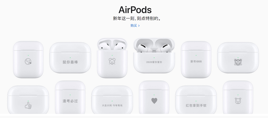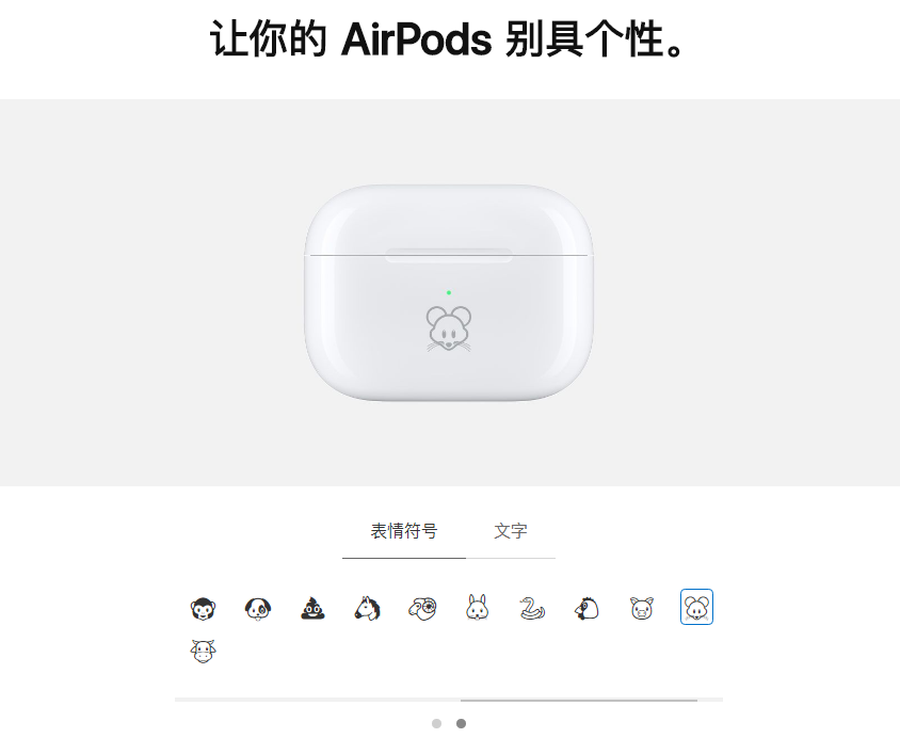 在此之前,在苹果官网购买iPad、AirPods等产品可以选择激光镌刻服务,但是个性雕刻仅限于文本。今天终于更新了可以添加emoji表情符号的雕刻选项。另外,目前苹果仅支持雕刻31个emoji表情符号,其中包括中国的十二生肖,非常适合作为新春礼物。