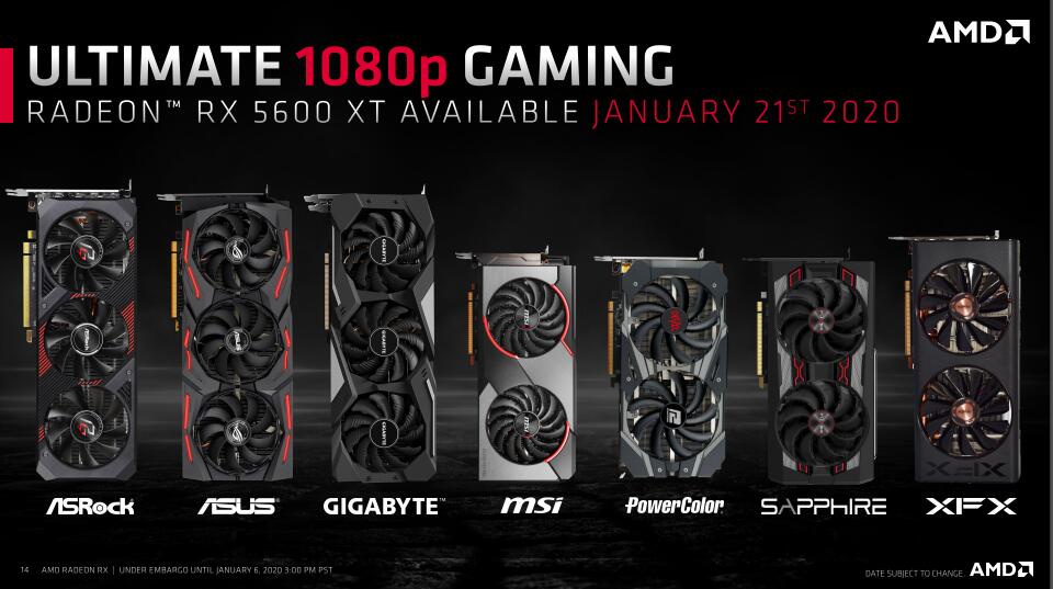 Radeon RX 5600 XT的官方指导价格为279美元,折合人民币约1934元。AMD预计将于2020年1月21日发售这款新卡,华擎、华硕、技嘉、微星、迪兰、蓝宝石、讯景等厂商均会推出相关的新品。