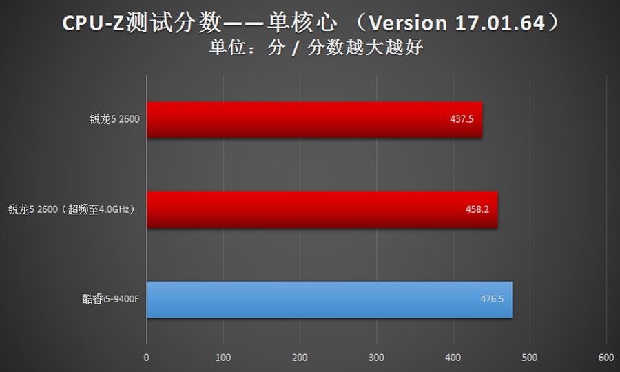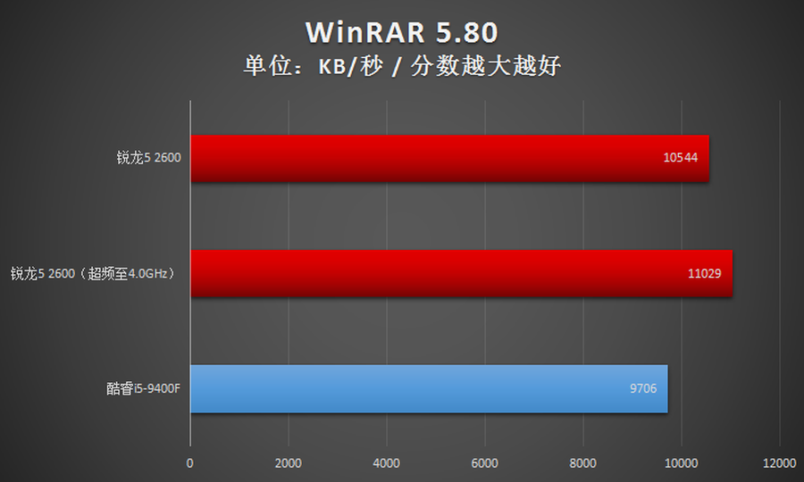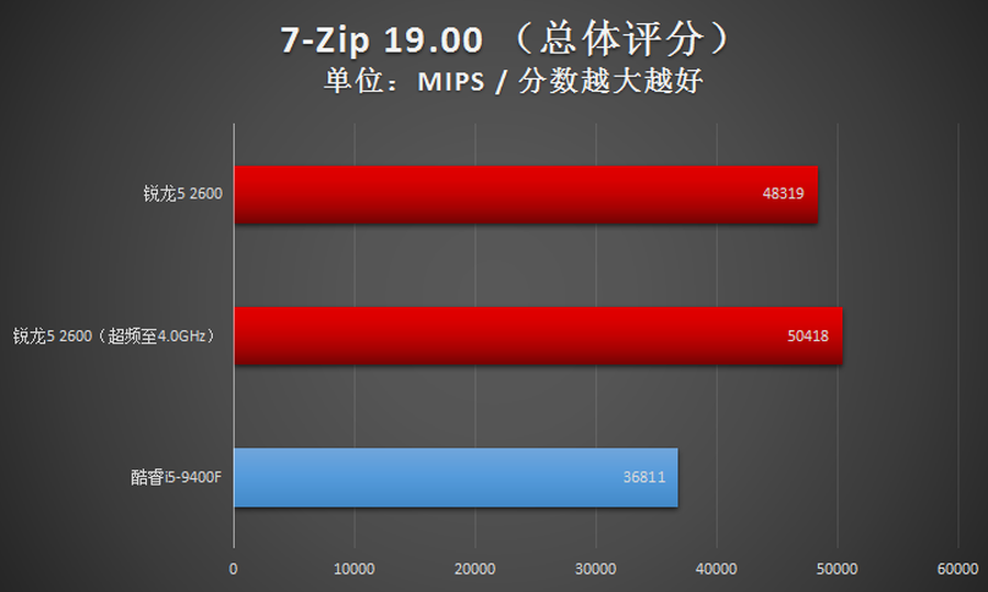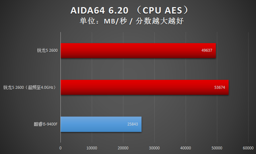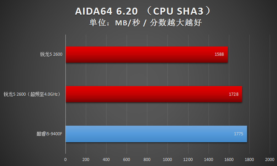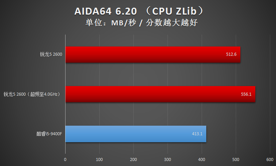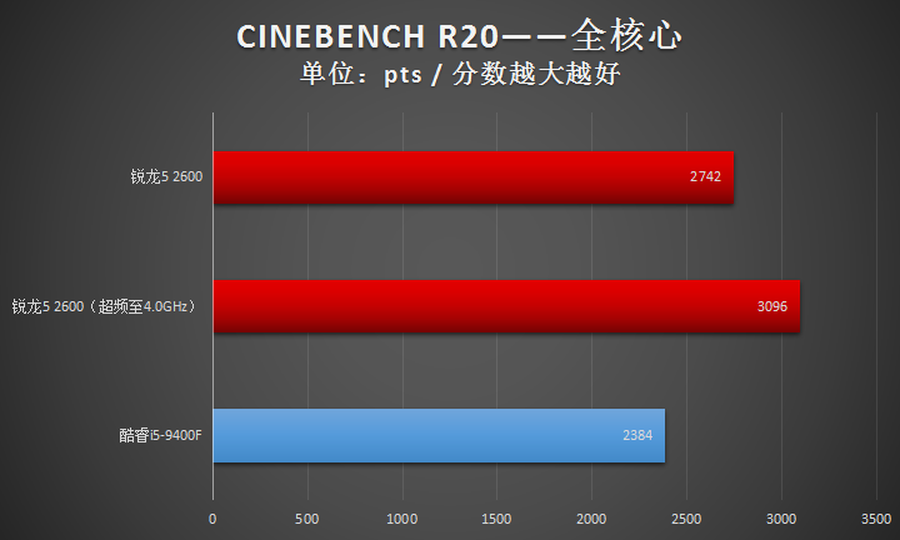 2600与Intel酷睿i5-9400F互有胜负,战了个3:2,性能总体上是优于Intel酷睿i5-9400F的。