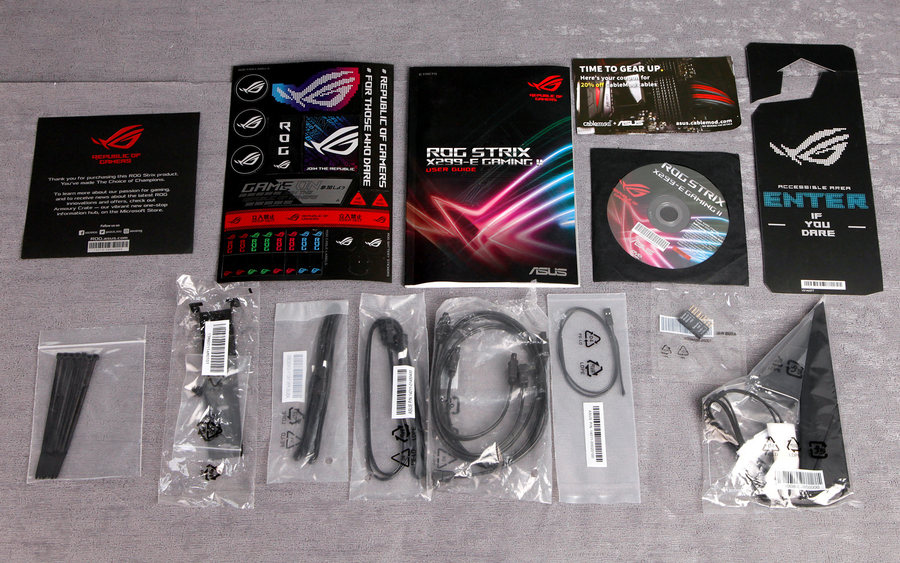 这款主板还附送了一大堆配件,将它们平铺可以摆满大半个桌面。