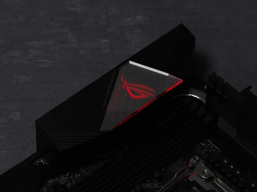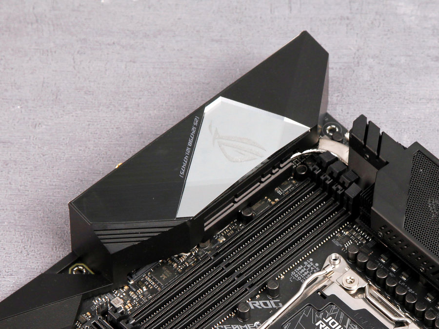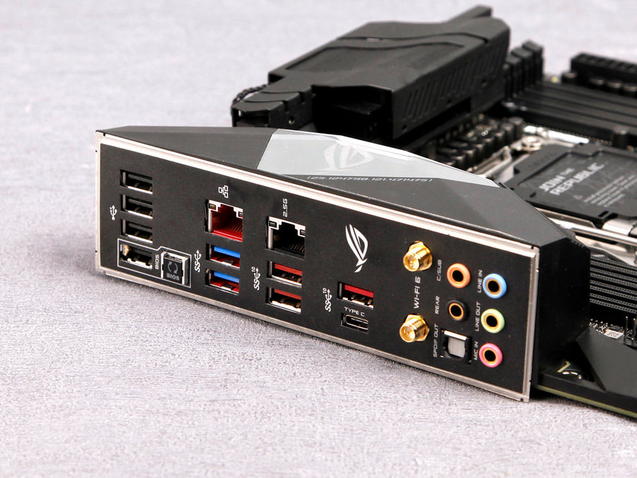 I/O接口防护罩上面的ROG“败家之眼”是这款主板板载的少有一处AURA RGB灯效模组。