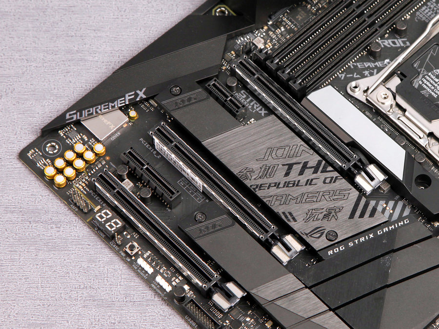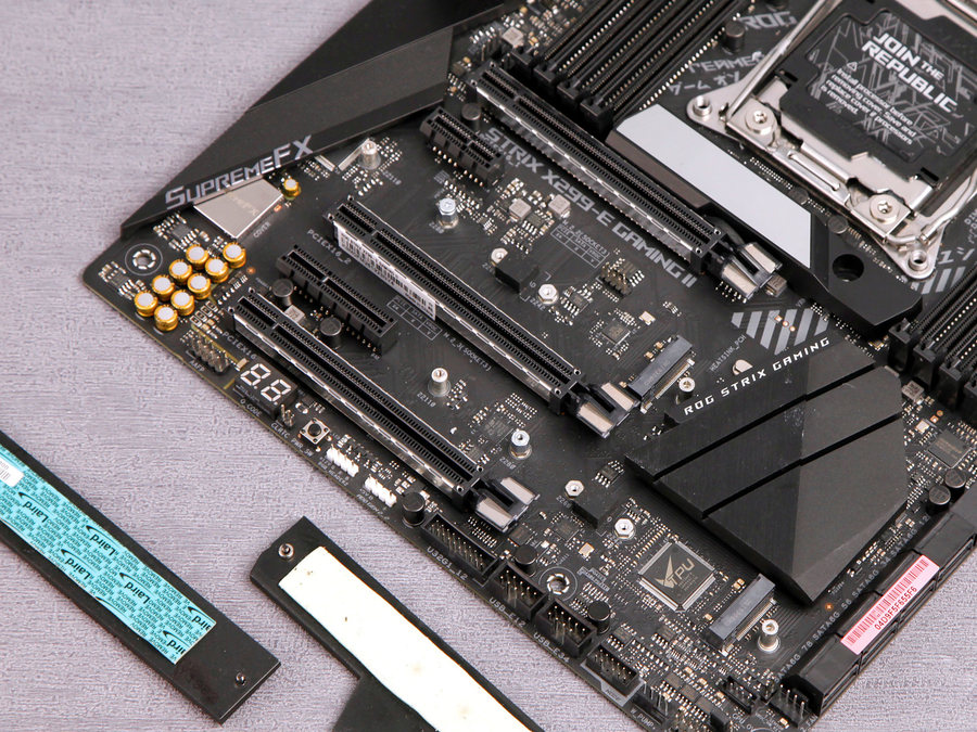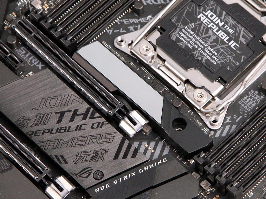 ROG STRIX X299-E GAMING II采用了ATX标准板型设计,做工精良,用料看上去也是相当足。