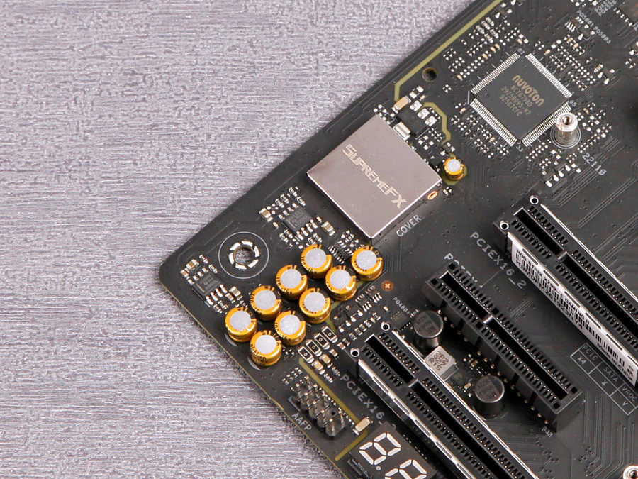 这款主板采用了高端的SupremeFX S1220A音频芯片。借助一系列专业音频设计,能够实现120 dB立体声播放输出和113 dB SNR录制输入,音频性能足以媲美很多独立声卡。