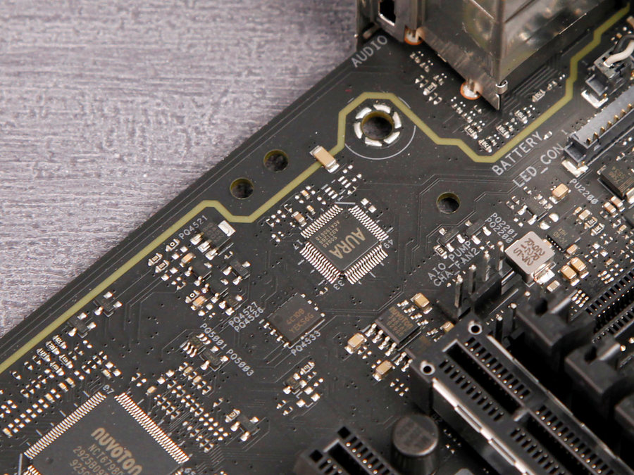 这款主板板载了一颗AURA芯片,用于精确控制AURA SYNC神光同步功能。