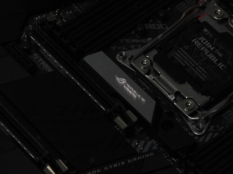 PCIe扩展区域的散热片下面设计了两处M.2固态硬盘安装位。加装的散热片可以为M.2固态硬盘提供散热作用。