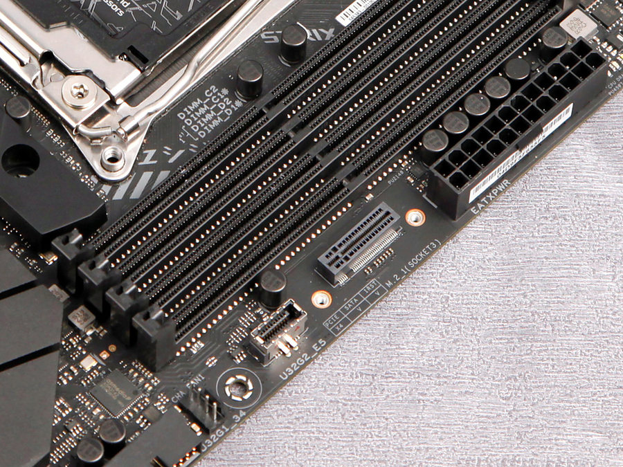 内存依旧是8根DDR4插槽设计,支持四通道内存运行模式以及高达DDR4-4266+的内存运行频率。借助华硕优选的OptiMem内存优化技术,还能够有效提升内存的稳定性和兼容性,并有效降低了内存延迟。