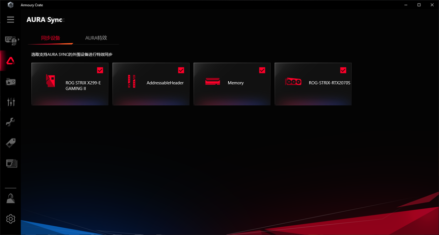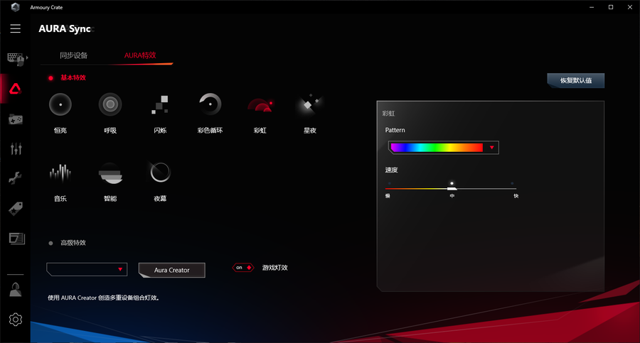 利用奥创游戏智控中心,用户还可以对主板上面的各种灯效进行设置,并可调控支持AURA SYNC技术的设备,实现浑然一体的AURA