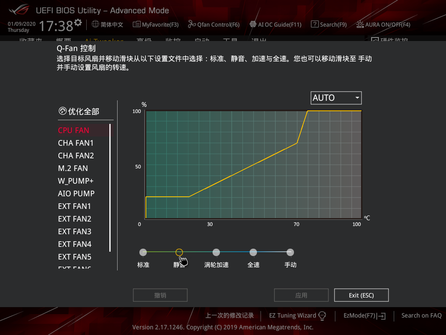 在BIOS界面下点击F6,可以进入风扇设定界面。用户可对主板上面的所有风扇进行详细地转速设置。