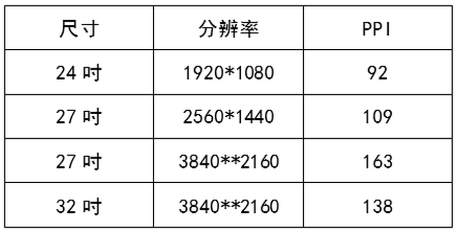 2、分辨率低≠不清晰。现在市面上比较常见的显示器分辨率为1080P、2K、4K,很多人默认低分辨率显示器是无法满足修图需求的,于是盲目追求4K,结果在使用中遇到图案文字过小、显卡不支持4K等情况。其实,屏幕的清晰度不仅仅是由分辨率决定的,准确地说,是由尺寸和分辨率共同决定的,我们一般用PPI来衡量屏幕的清晰度。PPI( Pixels Per Inch),所表示的是每英寸所拥有的像素(Pixel)数目,PPI高,意味着像素更小更密集,它的作用主要体现在:让人在更短的视距内实现屏幕像素的“无颗粒感”。