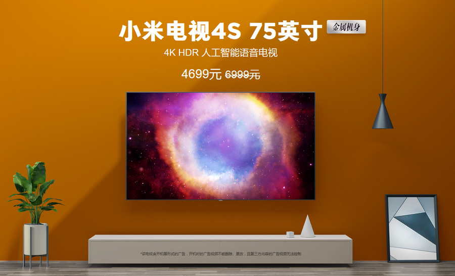 小米全面屏电视Pro 65英寸>>3399元>>购买链接