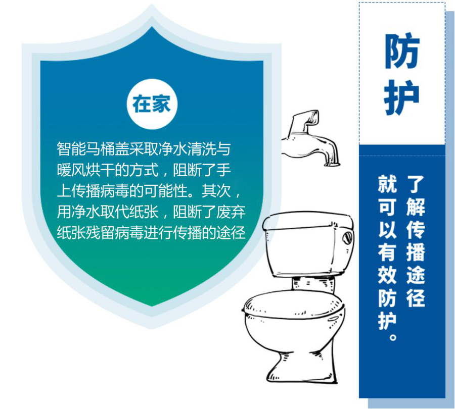 智能马桶盖阻隔传染源,避免粪便接触手、纸、衣物