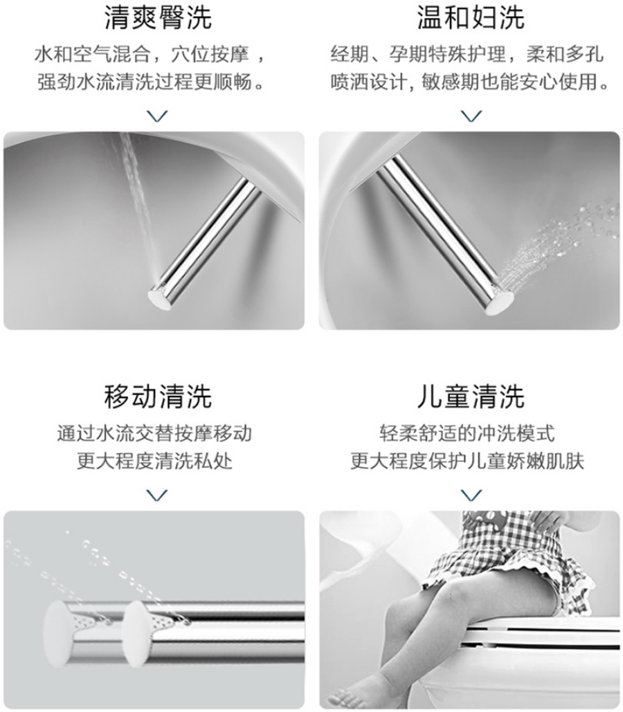 有些上了年纪的人,可能会提出一种质疑:“用水洗屁股,能洗干净吗?”。同样以海尔卫玺智能马桶盖为例,由于它内置了多重清洗模式,比如清爽臀洗、温和妇洗、儿童清洗以及移动清洗等。通过水和空气混合的强劲水流,能轻而易举去除肛门周围的粪便残留;不但清洗效果十分优秀,而且结合暖气烘干功能,完全避免了手动擦拭过程。