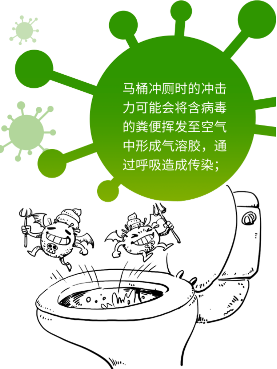 最后,在疫情传播途径比较明朗的当下,无论大家是使用传统马桶盖,还是智能马桶盖,冲马桶粪便时一定要盖紧马桶盖,防止排泄物的病毒挥发至空气中形成气溶胶。当马桶内部环壁残留无法冲刷的粪便时,务必用刷子进行手动清除,并通过消毒酒精对刷子进行全面消毒。此外,建议大家定期对马桶下水管进行灌水操作,因为下水道的U型管道会形成“水密封”环境,彻底隔绝病毒及异味外溢。