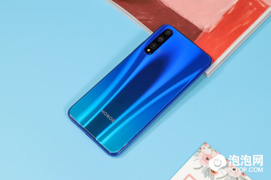 荣耀20S配备一块6.26英寸的打孔屏,分辨率2340x1080。背面为玻璃材质,采用2.5D弧度设计,因为引入了全新蝶羽纹理,背面光影线条变幻多样,潮流时尚,还有蝶羽蓝、蝶羽黑、蝶羽白三种颜色可选。