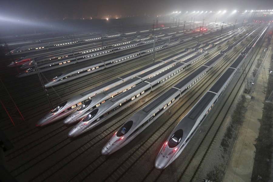 “基建狂魔”更在此后持续发力,“中国质造”也开始受到世界瞩目。我们建成了至今总里程达到3.5万千米的高铁网络。这位居世界领先的高速铁路网络,具备世界先进水平,高运营速度350千米/小时,居全球首位。