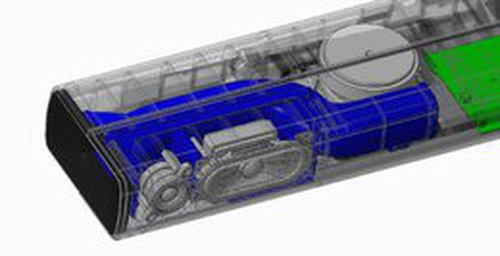 朝下配置低音、在侧面和背面配置低音导向孔端口,排除内部平行面以防产生驻波后,采用可提高音质的Hi-Fi产品类似设计