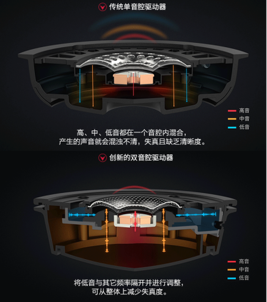 使用过阿尔法加强版游戏耳机才会发现,相比普通耳机,它听的更远、更准、声音层次分明、清透,仿佛在游戏战场的上空打开了上帝视角,可以洞悉整个战场。这就不得不说阿尔法加强版游戏耳机的两个独门秘籍,一个是双音腔,一个是低音物理调节滑块。