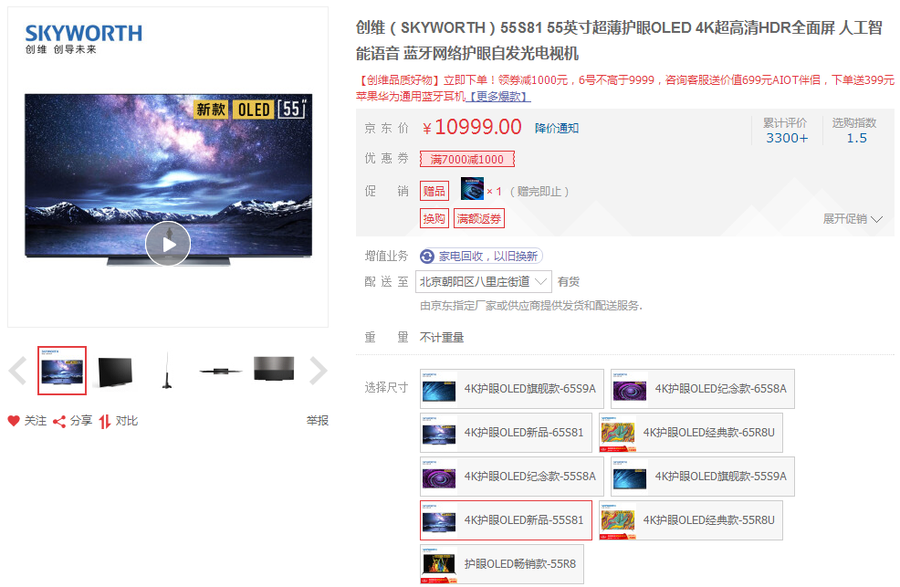创维55S81>>10999元>>购买链接