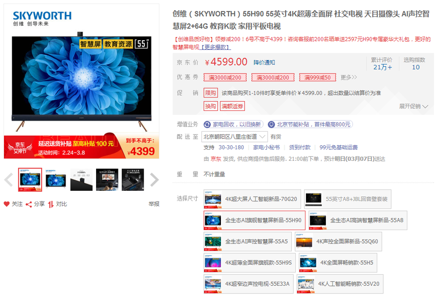 创维55H90>>4599元>>购买链接
