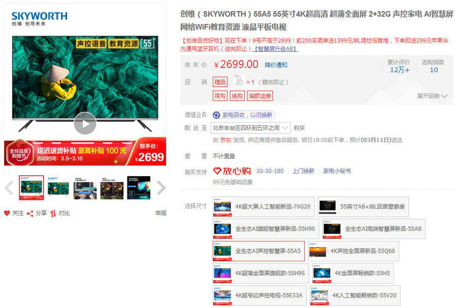 创维55A5>>2699元>>购买链接