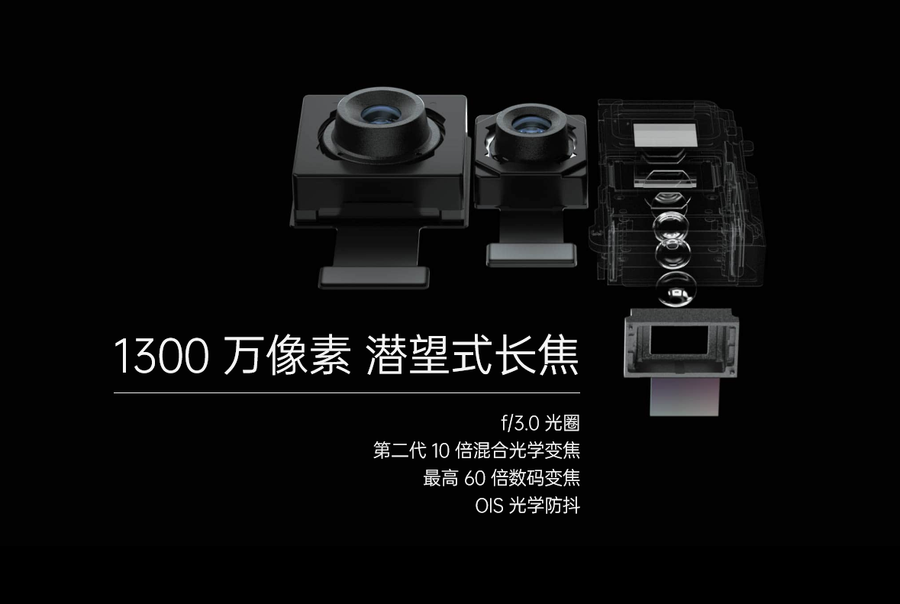 1300万像素潜望式长焦镜头支持10倍混合光学变焦,高60倍数码变焦,第二代 10 倍混合光学变焦能带来更顺畅的变焦体验。