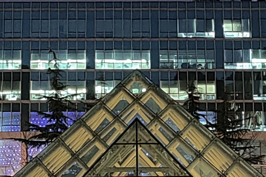 在选择夜景模式后,两款手机都会触发超级夜景功能,在几秒时间内连续拍摄多张照片进行多帧合成和降噪,画面放大细节方面俩手机表现相当。夜景模式下三星S20 Ultra的色彩表现相对来说则要更好些,这也和白天拍摄的样片一样,有着更高的饱和度和对比度。OPPO Find X2 Pro色彩还原较为真实,同时,OPPO Find X2 Pro在使用广角副摄镜头时也支持夜景模,大大提升了夜景模式的完备性。