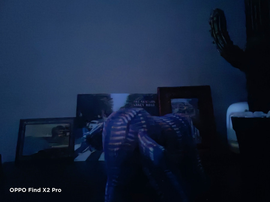 上面这组则是两款手机在极限暗光环境下拍摄的照片对比,当时整个房间仅有一款LED闹钟作为少有的光源,肉眼感觉上已经接近全黑的光线状态。而从实际的拍摄效果来看,虽然这样的环境下对于画质不能又过高要求,但OPPO Find X2 Pro还能看出所拍的景物,并且整体光线上也更为明亮;三星S20 Ultra则只有一个模糊的大搞轮廓。另外,在照片合成速度上OPPO Find X2 Pro要更快些,并且在拍摄时还可进行自动对焦的选择。