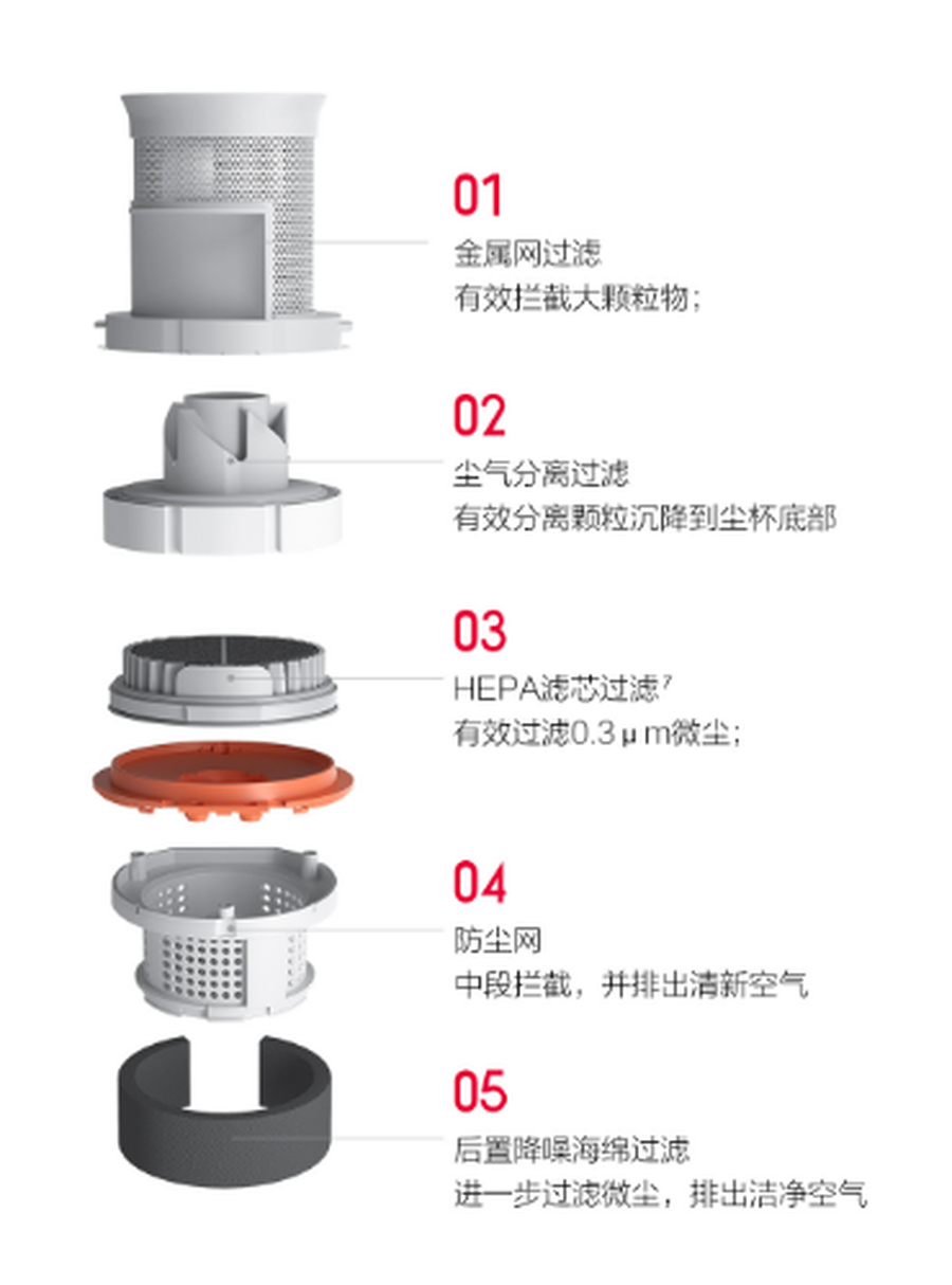 此外,睿米无线吸尘器F8 Pro版提升了三重降噪技术,噪音与前代相比降低了10%,整体续航时长则再次延长5分钟,允许用户连续使用1个小时。值得注意的是,睿米F8 Pro在过滤系统中增添了海绵过滤层,总共包含了五重过滤系统。当使用完成后,用户可利用吸尘器内置的磁吸式无线充电功能,对其进行充电和收纳。