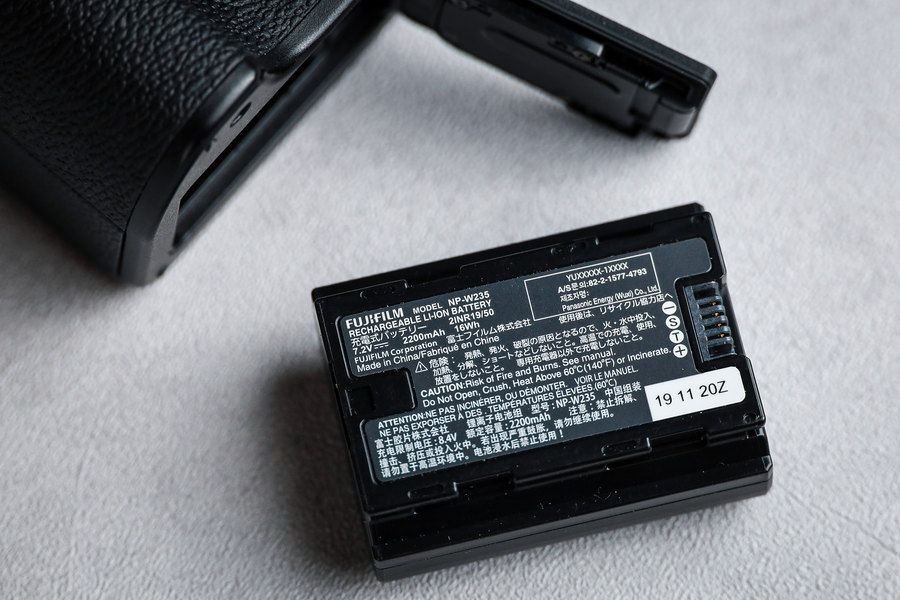 除了设计和操控细节行的改变,X-T4另一大改进的地方是终于更换了一枚全新的NP-W235型号锂电池,容量为之前NP-W128S的一倍还要多,在正常模式下可以拍摄达500张续航,较上代X-T3的390张多出25% ,使用省电模式更可高达600张续航。同时富士也同步推出了为X-T4搭配使用的电池手柄VG-XT4,可额外放入多两块电池,可连续拍摄1700张照片,整体续航已经达到了非常专业的水平。