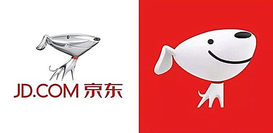 2017年8月京东开始启用全新设计的扁平化Logo,与之前的立体式Logo相比,金属狗Joy更加的可爱、圆润,同时Logo下方的“JD.COM”也被去除,整体以红色为底,红白相衬,更加简洁大方,更有识别度。