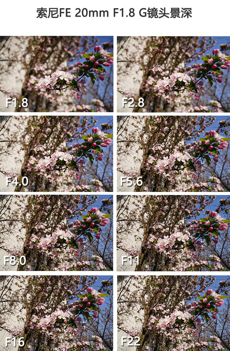 从以上实际测试以及100%放大截图来看,索尼FE 20mm F.8 G镜头的表现依然继续保持了G镜头高分辨率高锐度的特性,在整个光圈覆盖范围内都保持着不错的分辨率,即便在F1.8最大光圈下边缘画质稍稍偏肉,但中心画质拥有非常高的分辨率,而整体画质在F5.6光圈是达到非常好的,无论中心还是边缘都非常清晰锐利;同时,镜头在F8.0-F16这样的小光圈下的画质也有不俗表现,这也非常符合这支镜头的定位,因为大多数情况下拍摄风光都使用的是比较小的光圈。索尼FE 20mm F.8 G的高画质表现,主要得益于出色的光学设计以及2枚AA高级非球面镜片和3枚ED低色散镜片这些特殊镜片的运用。